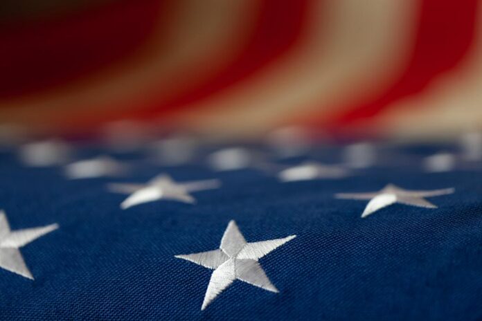 When displayed with other flags, the US flag should sit at the top of the pole, to the right of other nation’s flags, or in front and in the center of a line of flags.